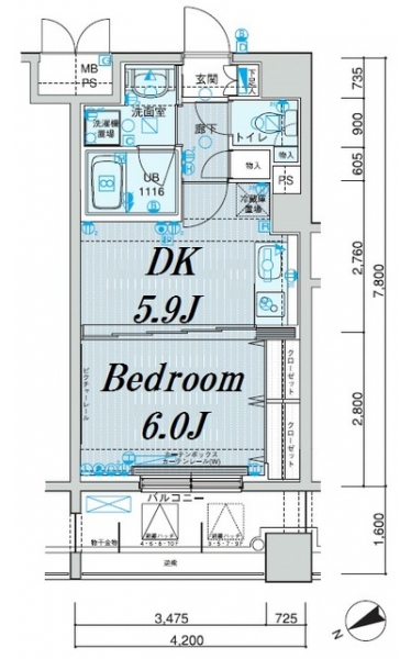 | 間取り | 1DK | 間取り内訳 |