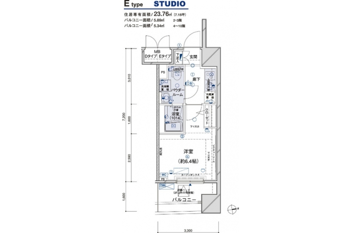 | 専有面積 | 23.76m² | バルコニー面積 | |