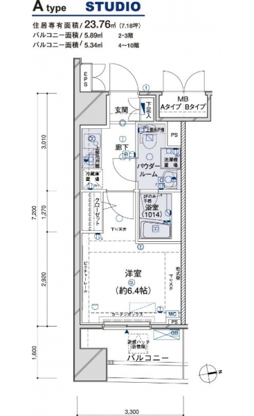 | 専有面積 | 23.76m² | バルコニー面積 | |