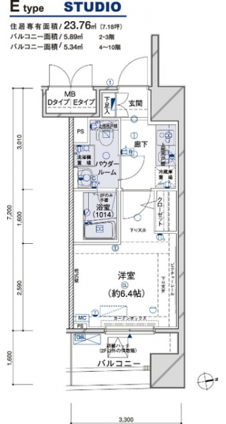 | 専有面積 | 23.76m² | バルコニー面積 | |