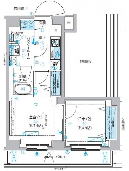 洋室 7.4 畳 6 階 洋室 4.9 畳 6 階 |