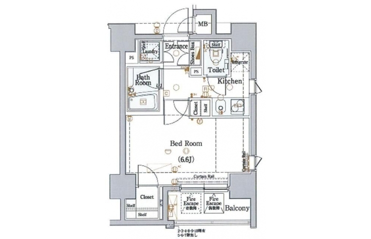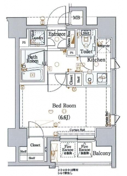 K 2 畳 洋室 6.6 畳 |