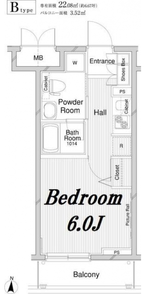 | 専有面積 | 22.08m² | バルコニー面積 | |