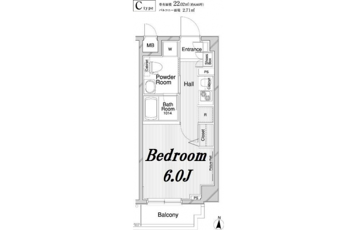 | 専有面積 | 22.02m² | バルコニー面積 | |