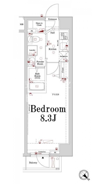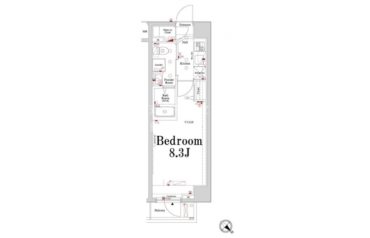 | 専有面積 | 24.83m² | バルコニー面積 | |