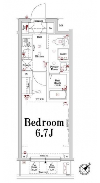 K 2 畳 洋室 6.7 畳 |