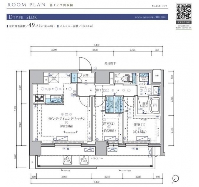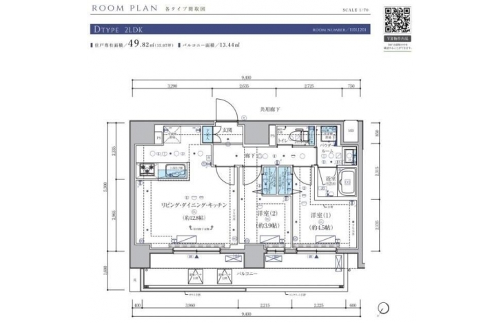| 専有面積 | 49.82m² | バルコニー面積 | |