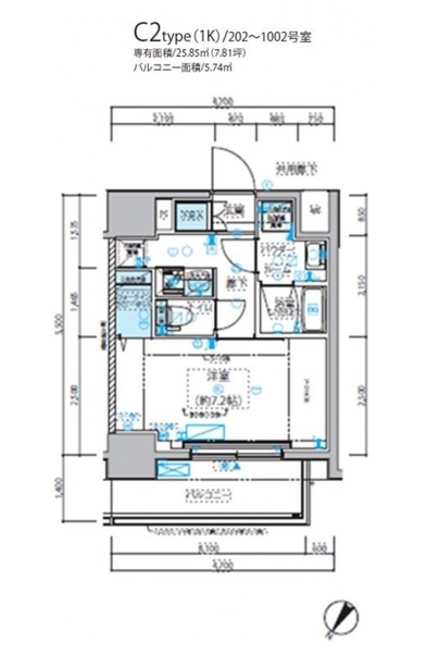 | 専有面積 | 25.85m² | バルコニー面積 | |