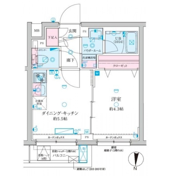 DK 5.5 畳 1 階 洋室 4.3 畳 1 階 |