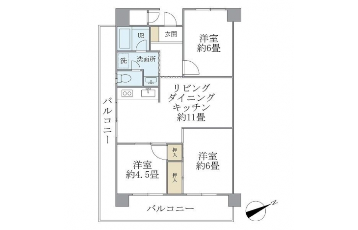 | 専有面積 | 61.38m² | バルコニー面積 | |