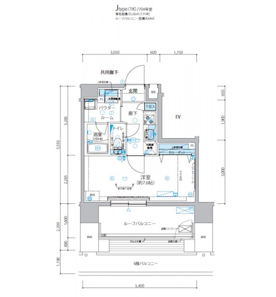| 専有面積 | 25.50m² | バルコニー面積 | |