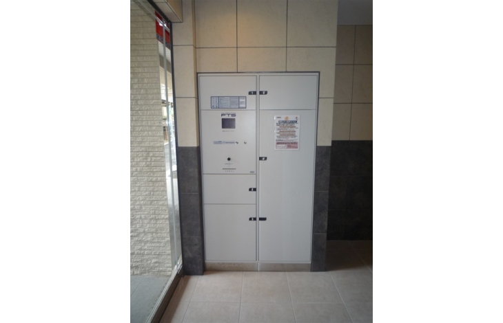 【宅配ボックス】不在時に届いた宅配便を本人の代わりに受け取り、24時間いつでも取り出せる宅配ボックス。2つの住宅設備を一体化させ、美しいデザインを実現させました。非接触キー対応なので、帰宅時に手荷物がある時も便利に利用できます。