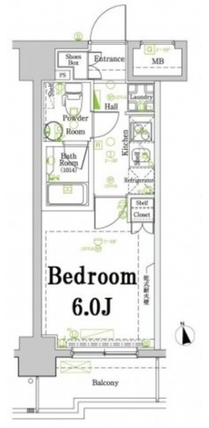 | 専有面積 | 20.66m² | バルコニー面積 | 3.67m² |
