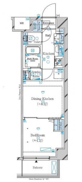 洋室 4.3 畳 1 階 DK 8.5 畳 1 階 |