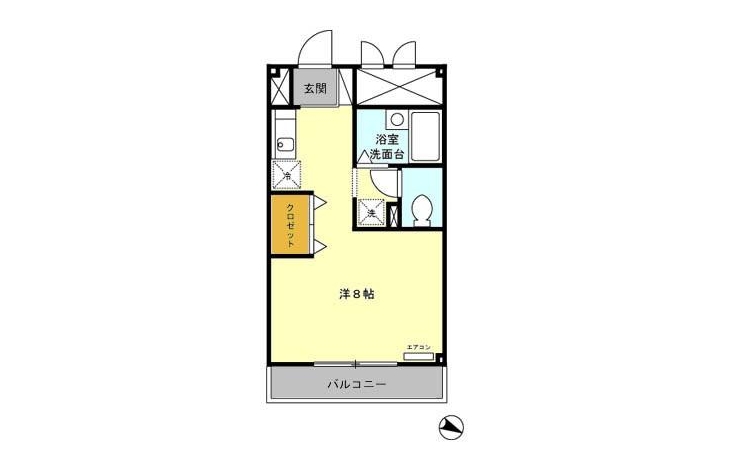 | 設備・条件 | BSアンテナ、CATV、オートロック、駐輪場、2階以上、バス・トイレ別、温水洗浄便座、室内洗濯機置き場、洗濯機置き場有、フローリング、冷房、エアコン、バルコニー、礼金なし、敷金なし、ペット不可 | ||