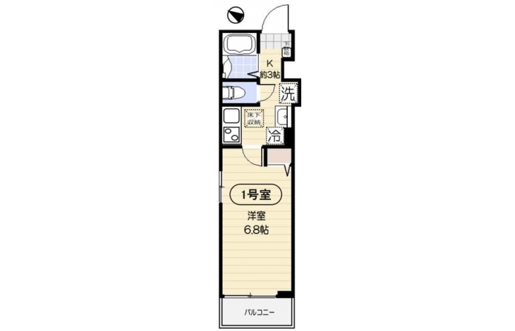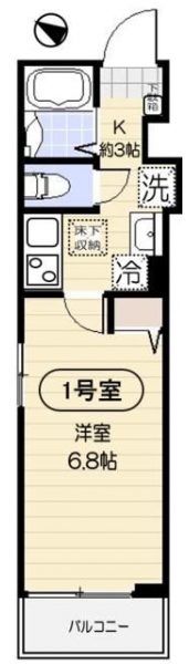 K 3 畳 1 階 洋室 6.8 畳 1 階 |