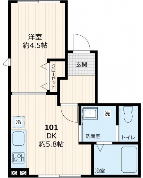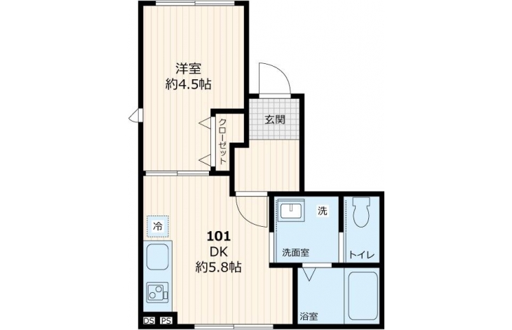 DK 5.8 畳 洋室 4.5 畳 |