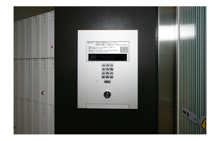 【オートロック】エントランスの集合玄関機のカメラにより訪問者を映像で確認出来ます。その他にも解錠表示機能等で居住者の安全と安心を確保します。
