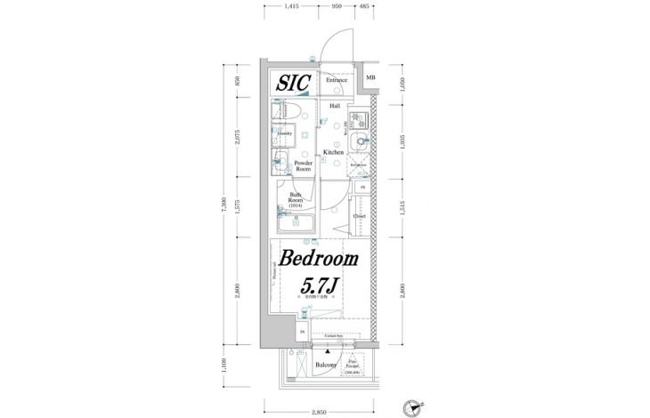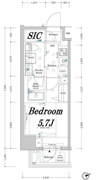 K 2 畳 洋室 5.7 畳 |