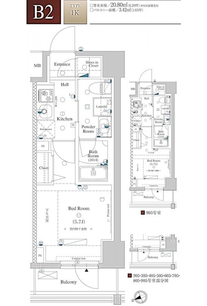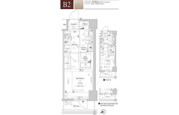 | 専有面積 | 20.80m² | バルコニー面積 | |