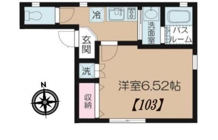 K 2 畳 洋室 6.5 畳 |