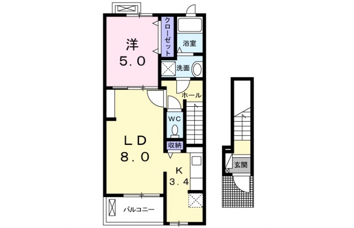 | 間取り | 1LDK | 階建 | 2階/2階建 |