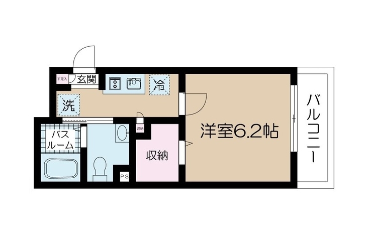K 2 畳 洋室 6.2 畳 |