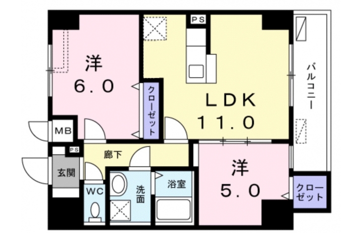 LDK 11 畳 洋室 6 畳 洋室 5 畳 |