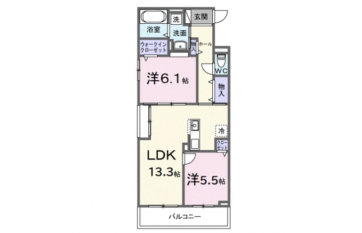 洋室 5.5 畳 洋室 6.1 畳 LDK 13.3 畳 |