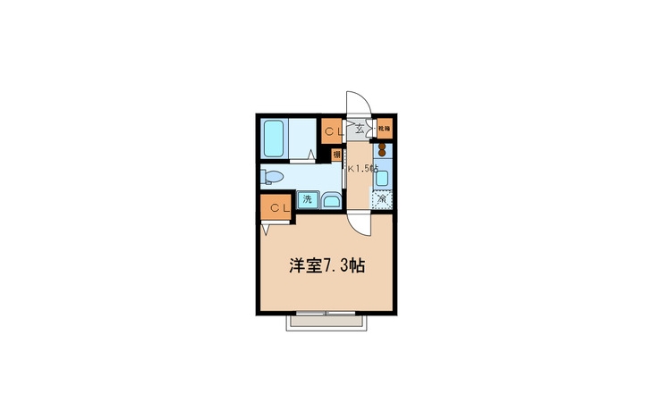 洋室 7.3 畳 1 階 K 1.5 畳 1 階 |