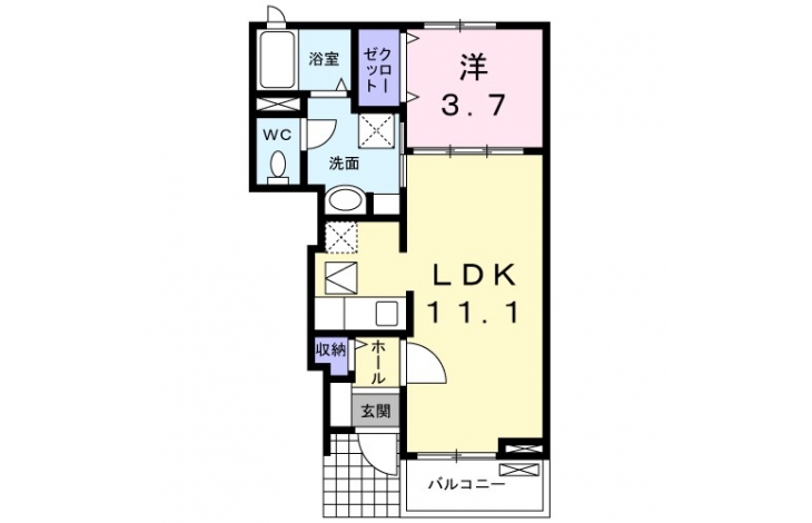洋室 3.7 畳 LDK 11.1 畳 |