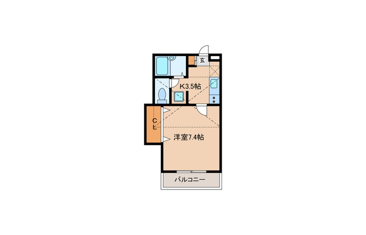 洋室 7.4 畳 2 階 K 3.5 畳 2 階 |