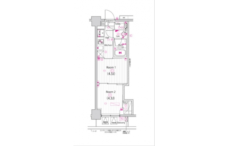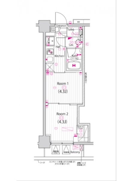 | 設備・条件 | BSアンテナ、CSアンテナ、オートロック、ディンプルキー、ダブルロックキー、宅配ボックス、エレベータ、デザイナーズ、システムキッチン、バス・トイレ別、温水洗浄便座、浴室乾燥機、追い焚き、室内洗濯機置き場、洗濯機置き場有、24時間換気システム、エアコン、ウォークインクローゼット、バルコニー、分譲賃貸 | ||