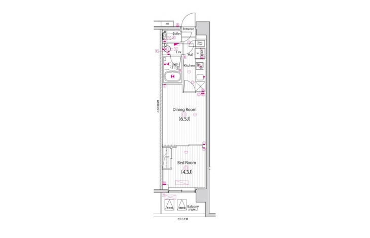 洋室 6.5 畳 洋室 4.3 畳 |
