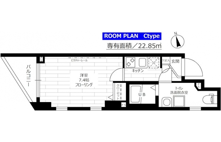 | 専有面積 | 22.85m² | バルコニー面積 | |