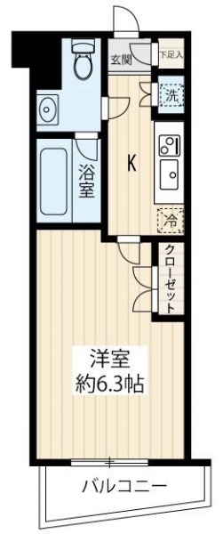 K 2 畳 洋室 6.3 畳 |