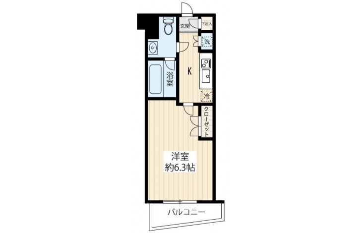 K 2 畳 洋室 6.3 畳 |