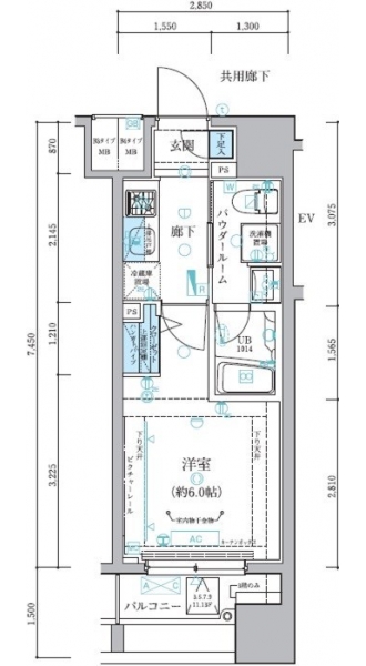 | 専有面積 | 21.23m² | バルコニー面積 | |
