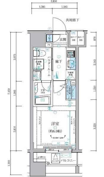 | 専有面積 | 21.23m² | バルコニー面積 | |