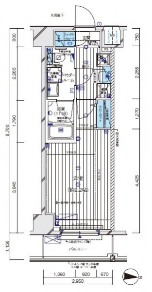 | 専有面積 | 25.66m² | バルコニー面積 | 3.39m² |