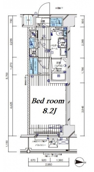 K 2 畳 洋室 8.2 畳 |