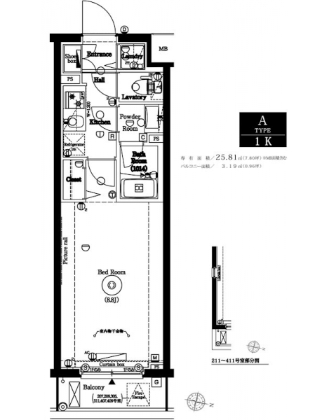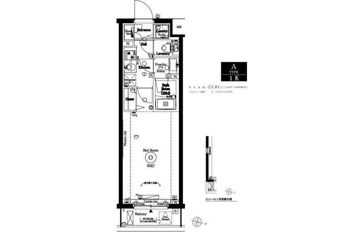 | 専有面積 | 25.81m² | バルコニー面積 | |