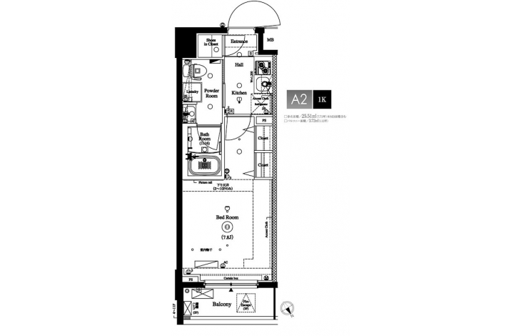 | 専有面積 | 25.51m² | バルコニー面積 | 3.72m² |
