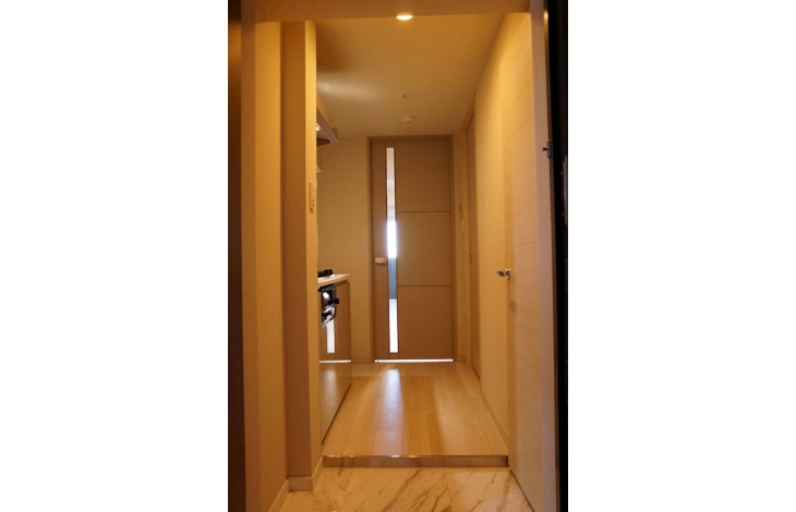 【エントランス】内外部の壁面には色合いや質感に優れた高級感あふれる面材をふんだんに使用、プライベートエリアへのプロローグを上品に、そしてドラマティックに演出します。