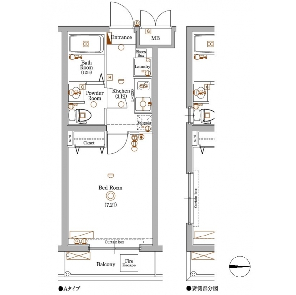 洋室 7.2 畳 K 3.1 畳 |