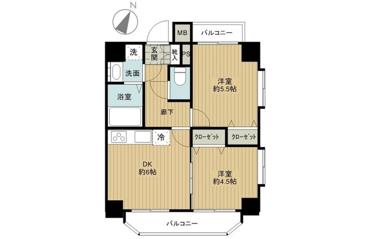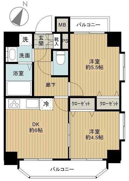 洋室 5.5 畳 洋室 4.5 畳 DK 6 畳 |