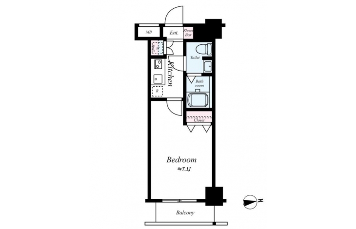 K 2 畳 洋室 7.1 畳 |