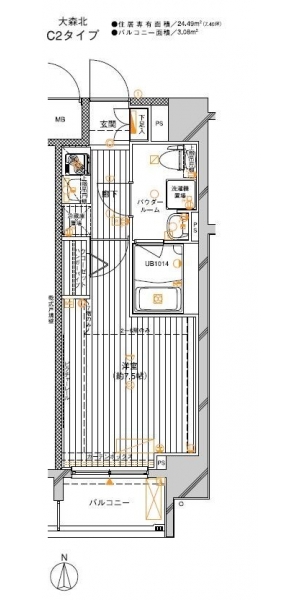 | 専有面積 | 24.49m² | バルコニー面積 | |