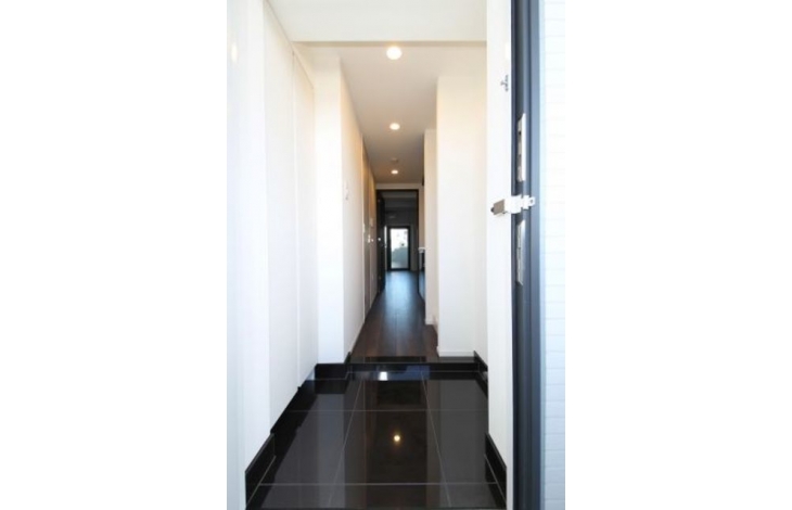 【エントランス】内外部の壁面には色合いや質感に優れた高級感あふれる面材をふんだんに使用、プライベートエリアへのプロローグを上品に、そしてドラマティックに演出します。
