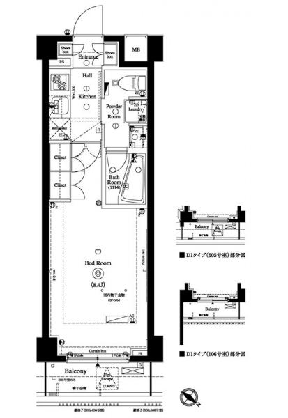 | 専有面積 | 25.52m² | バルコニー面積 | 3.19m² |
